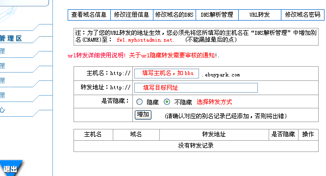 下面是在我司注冊的域名的轉(zhuǎn)發(fā)設(shè)置步驟