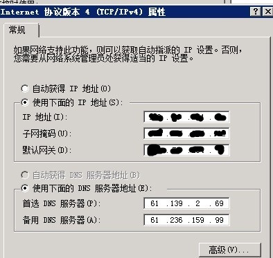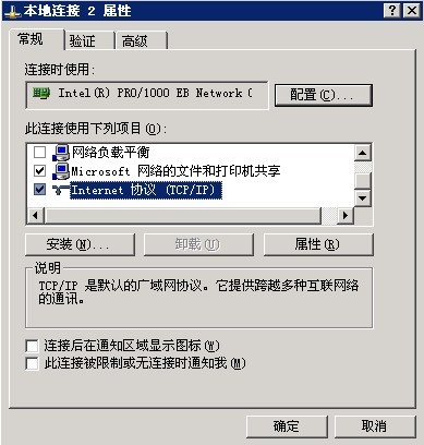 打開本地連接(win2003右鍵本地連接--屬性),選擇tcp/ip協議