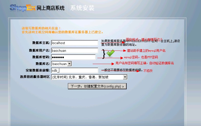 [原創(chuàng)]獨立主機、vps安裝shopex網(wǎng)店程序在我司VPS完整建立一個shopex網(wǎng)店,主要分為以下幾個步驟操作:一、VPS上建立站點和mysql》二、我司網(wǎng)站后臺提交白名單》三、下載程序安裝》四、安裝過程可能遇到的問題》五、shoex偽靜態(tài)設置。針對這五個步驟以下進行詳細介紹: 一、VPS上建立站點和mysql和二、我司網(wǎng)站后臺提交白名單。對于這兩步我公司已經(jīng)有詳細的介紹請看:http://m.shinetop.cn/faq/list.asp?unid=448。需要注意的是白名單我司每天在10點、16點、21點時間導入防火墻,每次提交之后要等導入防火墻才能正常用域名訪問。 三、下載shopex程序安裝。遠程登陸服務器直接訪問http://www.shopex.cn/48release/選擇線路下載。解壓到對應主機目錄如下圖: 然后用域名/install訪問安裝,主要在填寫數(shù)據(jù)庫的地方要注意如下填寫: 四、安裝過程可能遇到的問題,主要是目錄權(quán)限問題,具體請看詳細說明:http://m.shinetop.cn/faq/list.asp?unid=447 五、shopex偽靜態(tài)問題請看詳細說明:http://m.shinetop.cn/faq/list.asp?unid=441 (注:此流程適合PHP+mysql的所有網(wǎng)站,比如常用的ecshop、discuz程序;其他程序除不建立mysql流程也完全一致)