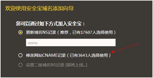 等待cname生效,生效后他們會發信息給你現實已經成功。 很多用戶到這部分后就不再繼續了, 以為解析后就會開啟了防護以及保護功能, 一般30分鐘后cname就會生效。添加安全寶發給你的郵件中的別名地址, 具體域名解析按照不同域名商的提示進行解析 3、最后最重要的就是設置方面 一定要設置 如果只是解析過去不進行設置的話 安全寶默認都是off狀態 并不開啟任何防護功能的 所以需要進行設置! ![]()