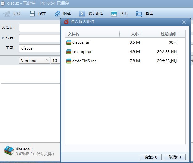 超大附件保存在文件中轉站中,并且有30天保存時間限制,接收者需要在文件保存期內進行下載,過期后就無法下載。