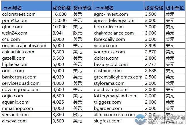 域名colorstreet.com注冊(cè)于2001年,直譯為“色彩街”,這個(gè)組合域名對(duì)應(yīng)一款男士服飾品牌color street。而據(jù)whois信息顯示,域名colorstreet.com背后的買家是一家名為Innovative Cosmetic Concepts的公司,官網(wǎng)域名為incoco.com。據(jù)網(wǎng)站內(nèi)容來(lái)看,是一家創(chuàng)意美甲公司,旗下服務(wù)女性的項(xiàng)目color street目前正在建站中,官網(wǎng)啟用域名colorstreet.com。 緊隨其后的也是組合域名porn4k.com,成交價(jià)為15,000美元,約合人民幣10萬(wàn)元。作為一個(gè)單詞、數(shù)字、字母組合的雜米域名,之所以能賣出五位數(shù)美元的價(jià)格,全是因?yàn)槠涑扇司W(wǎng)站的含義。這類域名引流作用巨大,所以價(jià)值一般較高。 排在第三的是qfun.com,成交價(jià)為10,000美元,約合人民幣6.8萬(wàn)元。這個(gè)域名因?yàn)橛小癴un”(有趣,娛樂(lè))之意,很適合搭建游戲、直播、視頻等網(wǎng)站,像目前國(guó)內(nèi)的彈幕視頻網(wǎng)站acfun就與之相似。另外,英國(guó)護(hù)膚品牌奇思妙方(qfun)也與之對(duì)應(yīng)。 除此以外,兩字母+數(shù)字的組合域名wein24.com和c4u.com分別以8941歐元和6000美元成交,隨后“中國(guó)中國(guó)”域名chinachina.com也以5800美元的價(jià)格榜上有名。