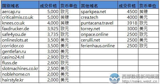 國別域名方面,本期表現平平,成交價最高的域名是俄羅斯國家域名aercap.ru,對應有荷蘭愛爾開普飛機租賃公司(AerCap Holdings N.V.),其官網域名為aercap.com。小編猜測,沒準就是AerCap公司收購保護了域名aercap.ru。 其他域名方面,新頂級域名表現可圈可點,本期共有4個新后綴上榜。其中,crea.tech以4000美元的價格成交,該域名對應很多縮寫詞,比如加利福尼亞不動產協會(California Real Estate Association),另外血肌酐也與之對應。除此以外,puntacana.travel(地名:達加納)、onpace.online(步伐)、ferienhaus.online(大廈)等域名均超2500美元成交。 本文轉載自新聞資訊,原文鏈接:Sedo交易榜:“本地媒體”超12萬元成交! 4個新頂級域名上榜