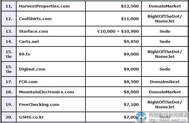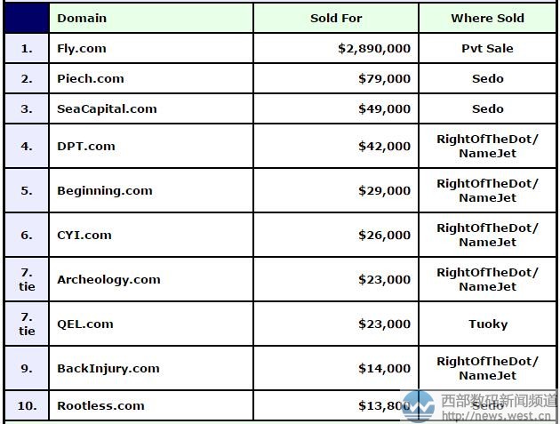超越兩數(shù)字01.com!域名fly.com以1991萬(wàn)元領(lǐng)跑DN榜三五互聯(lián)(35.com)5月4日消息,本期的DN交易榜(4.24-4.30)上,雖然短字符域名和單詞域名各有千秋,但榜單的冠軍寶座卻被極為短小精湛的單詞域名fly.com以2,890,000美元的高價(jià)摘得,約合人民幣1991萬(wàn)元。這也是目前為止,今年DN榜上成交價(jià)最高的域名,甚至超過(guò)以1,820,000美元成交的01.COM。