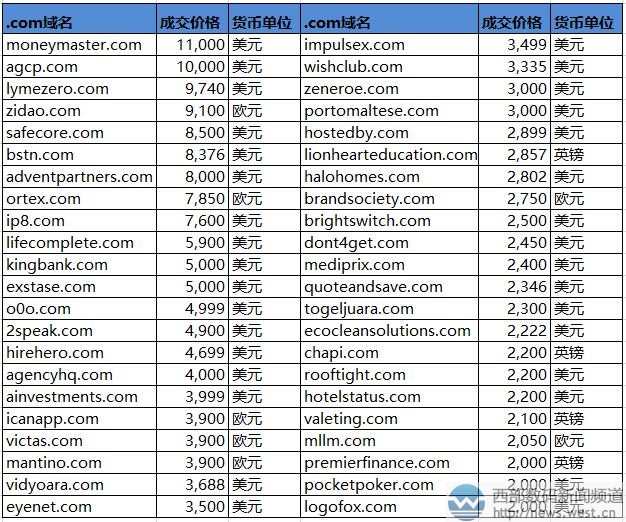 Sedo交易榜:意大利域名奪得冠軍!“比特幣”域名bitcoins.co拍出五位數!三五互聯(35.com)7月6日消息,最新一期的sedo交易榜出爐,本期上榜的域名共有61個,其中賣價最貴的是意大利國別域名flix.it,成交價為22,000美元,約合人民幣15萬元。