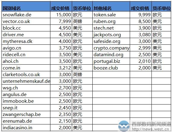 國別域名方面,來自德國的域名snowflake.de以15,000歐元結(jié)拍,約合人民幣11.5萬元。其主體英文snowflake卻有“雪花、雪片”的中文含義,不少相關(guān)域名的成交價(jià)都不錯(cuò)。比如,snowflakedb.com曾在2014年被SnowFlake Computing(雪花計(jì)算)公司以近4萬元的價(jià)格收購;英文域名snowflake.co.uk也在今年5月底拍出了約10.6萬元的價(jià)格。 其他域名方面,本期三枚新頂級域名榜上有名。其中,token.sale有“代幣銷售”的意思,很適合搭建虛擬貨幣電商類平臺,成交價(jià)為9,999歐元,約合人民幣8萬元。同樣適合虛擬貨幣領(lǐng)域的還有域名crypto.company,成交價(jià)為2,999美元,該域名有“加密公司”的意思,可用于加密貨幣平臺。除此以外,新頂級域名booze.club也以2000美元的結(jié)拍價(jià)上榜。 本文轉(zhuǎn)載自新聞資訊,原文鏈接:Sedo榜:“工作”類域名以20萬元領(lǐng)銜!3個(gè)新頂級域名表現(xiàn)搶眼!