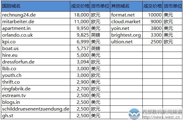 國別域名方面,兩個(gè)德國域名表現(xiàn)出眾,rechnung24.de和mitarbeiter.de分別以18,000歐元和11,000歐元結(jié)拍。其中,rechnung24.de雖是組合域名,但“rechnung”有“賬單”的意思,24又對(duì)應(yīng)有24小時(shí),適合搭建財(cái)務(wù)票務(wù)類網(wǎng)站。域名mitarbeiter.de則表示“同事、職員、雇員”的意思,在德語里也是非常通用的詞語。 其他域名中,format.net以10,000美元節(jié)拍,主體“format”有“版式、形式、安排”等意思,目前對(duì)應(yīng)有福瑪特自行車(formatbike.cn)。另外,新頂級(jí)域名cloud.market以9000歐元成交,該域名直接代表“云市場(chǎng)”,對(duì)應(yīng)當(dāng)前比較火熱的云技術(shù)領(lǐng)域,可應(yīng)用的空間較廣。 本文轉(zhuǎn)載自新聞資訊,原文鏈接:三字母ipb.com六位數(shù)領(lǐng)跑Sedo榜!數(shù)字域名7306.com緊隨其后