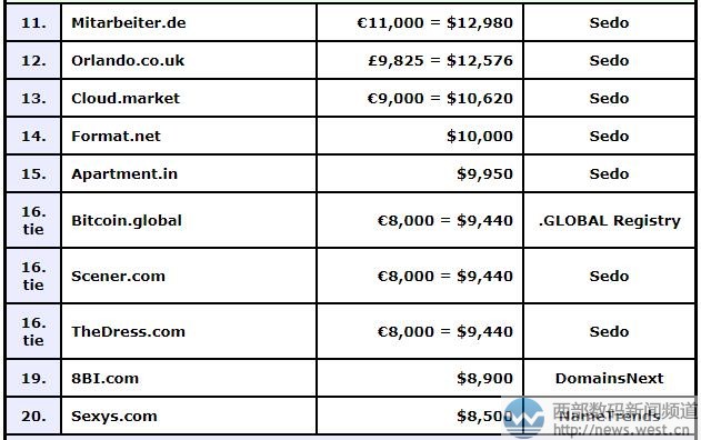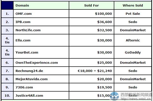 金融終端66萬元收購域名OMF.COM!“比特幣”“云市場”均登DN榜三五互聯(35.com)8月17日消息,本期 DN交易榜(8.14-8.20)上,三字母域名OMF.COM以100,000美元奪得第一,約合人民幣66萬元。
