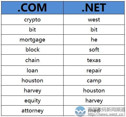 .com域名方面,單詞“crypto”(秘密的,加密的)排在第一。這個詞因與加密貨幣密切相關,今年以來曾多次成為十大熱門關鍵詞。據悉,就在5月和6月,“crypto”還分別登頂.com和.net域名熱門詞匯榜榜首。 接著是bit,代表有“比特”的意思,對應當前火得一塌糊涂的比特幣市場。今年以來,比特幣市場瘋狂發展,相關域名的行情也隨之暴漲。不僅有多個“比特幣”域名高價交易,也催生了大批用戶瘋狂搶注。 除此以外,區塊鏈的走紅也讓相關詞匯成了香餑餑。像block(塊)、chain(鏈)等詞均是8月份相當熱門的注冊詞。另外,兩個金融類詞匯“mortgage”(抵押)以及“loan”(貸款)也再次上榜,根據以往的熱門詞榜單來看,這兩個單詞應該是.com和.net域名的長期熱門詞匯,很適合搭建相關金融平臺。 .net域名方面,8月份的最熱詞匯是west,是“西部,西邊”的意思。緊隨其后的仍然是“比特”單詞bit,這說明不管是.com還是.net域名,熱門行業始終牽絆著域名注冊者的神經。 隨后,人稱代詞“he”(他)排在第二,也可作單拼,有“和”的意思,這個詞可與多個領域多個詞搭配,可應用的空間很大。另外,因受颶風襲擊而遭受巨大影響的美國城市休斯頓“houston”也成為了8月份熱門注冊詞。 本文轉載自新聞資訊,原文鏈接:威瑞信8月報:加密“crypto”又成最熱關鍵詞!“休斯頓”城市也榜上有名