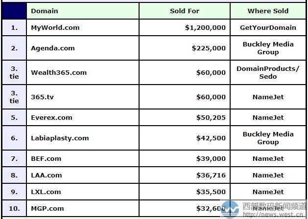 本文轉(zhuǎn)載自新聞資訊,原文鏈接:重磅:“我的世界”域名myworld.com以790萬元登頂DN榜