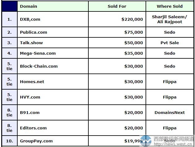 來源三五互聯(lián)新聞資訊:域名DXB.COM以143萬元領(lǐng)跑DN榜!新頂級六位數(shù)成交引關(guān)注