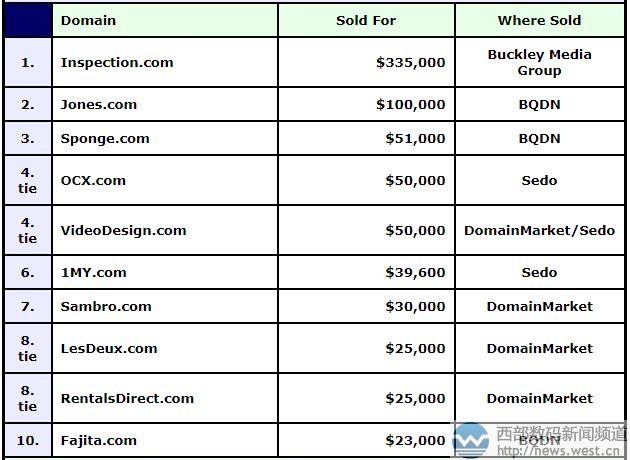 域名inspection.com是“檢驗、檢測”的意思,是十分通用的英文單詞,適合搭建檢測軟件、檢驗平臺等。據(jù)了解,域名inspection.com由 Ms. Buckley中介成交,過去兩年時間均由其委托出售。此次以212萬元收購inspection.com的是總部位于香港的亞洲質(zhì)量檢測公司 Asia inspection,官網(wǎng)域名為Asiainspection.com。拿下inspection.com將用于品牌域名升級。 排在第二的是以100,000美元在BQDN平臺成交的域名Jones.com,約合人民幣63萬元。該域名注冊于1996年,在英文中是一個較為普遍的人名,譯為“瓊斯”。因為該詞使用較廣,不少終端以此命名開展業(yè)務(wù),比如滑雪產(chǎn)品供應(yīng)商Jones,官網(wǎng)啟用jonessnowboards.com;再比如服飾品牌JACK&JONES,域名為jackjones.com。緊隨其后的域名sponge.com也在BQDN成交,價格為51,000美元,是“海綿、海綿狀物”的意思,也對應(yīng)有不少終端。 接下來是均以50,000美元并列第四的三字母域名OCX.COM和英文組合域名videodesign.com。前者對應(yīng)有OCX控件;后者是“視頻設(shè)計”的意思,可用于視頻、廣告設(shè)計等領(lǐng)域。總的說來,這兩個域名的應(yīng)用價值都不錯。 本期DN榜上,三雜域名1MY.COM以39,600美元躋身榜單前10。雖然品相上不如純字母域名,但三個字符的域名勝在簡短好記,推廣和宣傳都很容易,因此市場價值也不容小覷。據(jù)whois信息顯示,域名1my.com的持有者為上海銅錢投資股份公司,不知道終端接下來是否會啟用該域名。 同樣躋身10強的還有域名sambro.com,成交價為30,000美元,是“山姆兄弟”的意思;域名lesdeux.com,成交價為25,000美元,由大佬Mike Mann售出,據(jù)說Mike Mann在2010年收購該域名時成本僅為265美元。 其他域名交易情況,詳見下表: