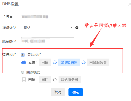 特別注意:設置好后看下截圖這個位置: 回源模式需要如截圖改為云端