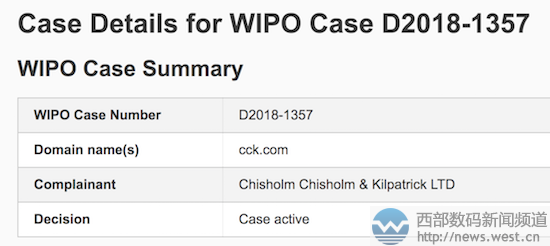 身價中六位數!國人持有的三聲母域名CCK.COM卷入仲裁!6月20日消息,據外媒domaininvesting報道,近日又一枚三聲母域名CCK.COM卷入了爭議域名仲裁。案件號為D2018-1357。