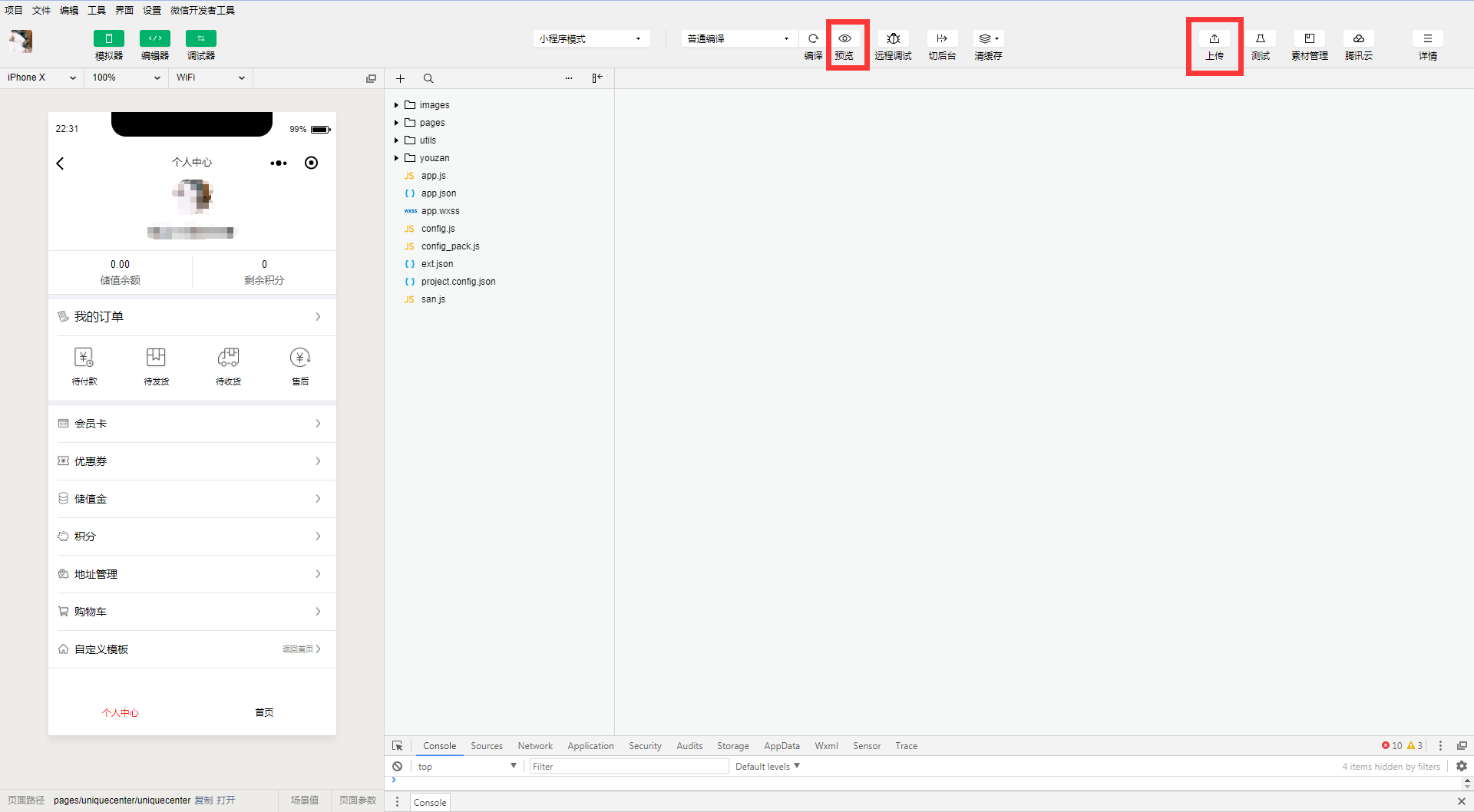 在微信小程序開發(fā)工具中可以預覽小程序,并將小程序代碼上傳至微信小程序后臺