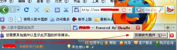 比如安裝火狐瀏覽器會(huì)進(jìn)入SHOPEX會(huì)自動(dòng)提示下載插件,如圖: