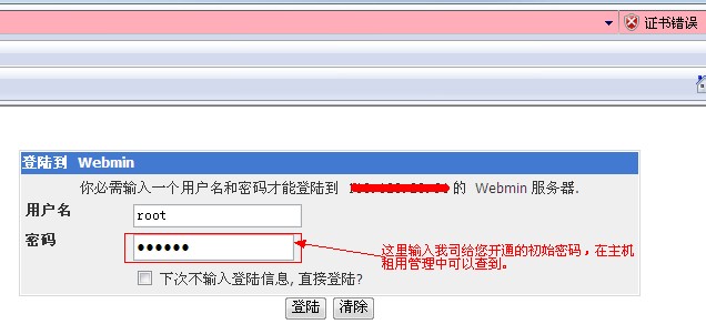 2、登錄頁面輸入賬號root,密碼就是您VPS或者服務器的初始密碼(可以在業務管理—主機租用管理查到)登錄,如圖: