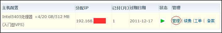 點擊“管理”進入獨立IP主機的管理面板,如圖: