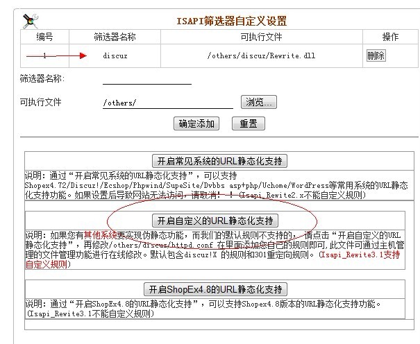 然后點擊開啟自定義偽靜態(tài),會生成一條記錄 通過FTP或者文件管理進(jìn)去,在others\discuz\下面,修改http.conf文件內(nèi)容