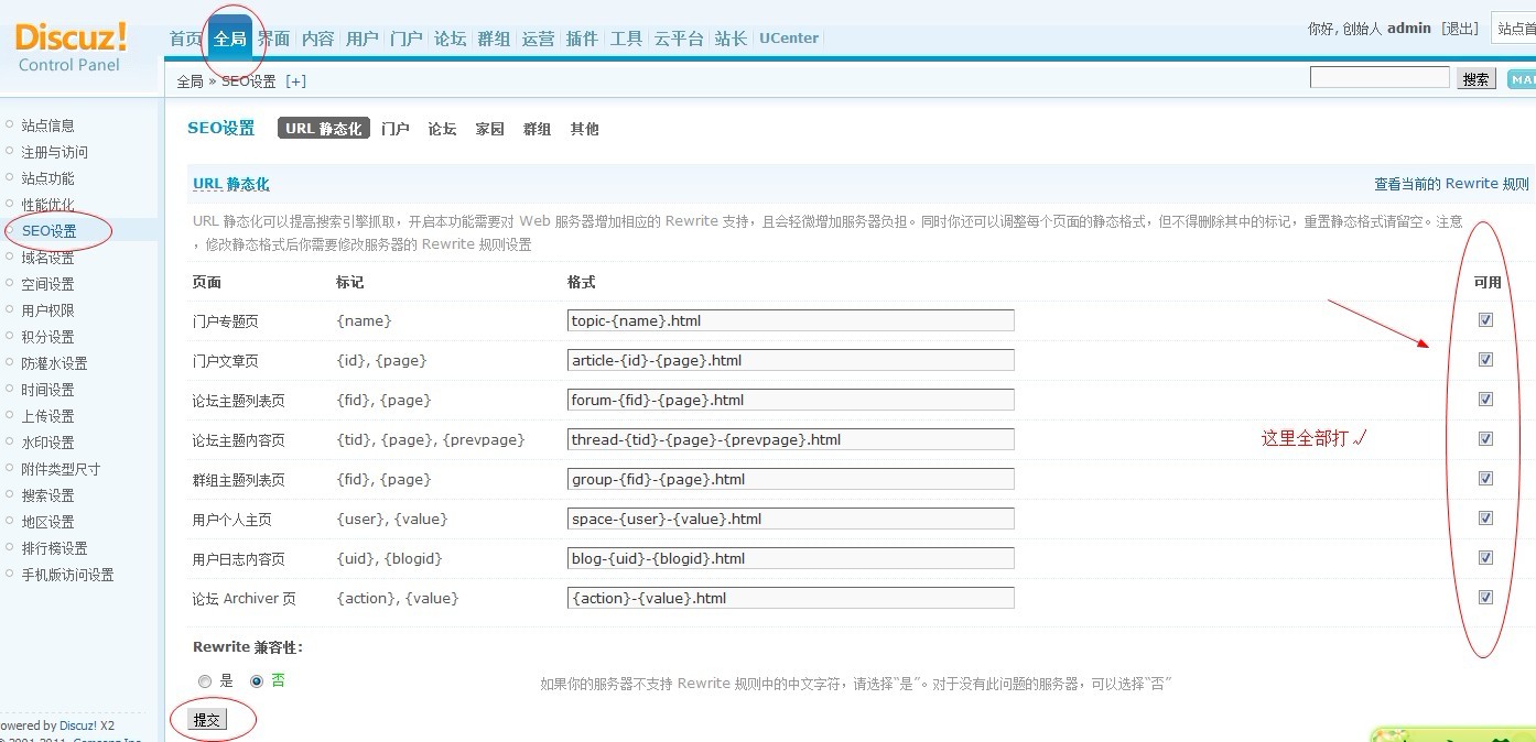 discuzX2.5對應(yīng)的偽靜態(tài)規(guī)則; #dzx2.5 apache和iis通用(apache需去除[NU]參數(shù)) 然后進(jìn)入discuz后臺,按照以下幫助開啟偽靜態(tài)