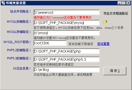 網站管理助手v4.0 建站流程首次運行網站管理助手,會彈出“系統配置”窗口,一般情況下只需要檢查站點開設目錄是否存在,如果不存在, 請先手工建立目錄。強烈建議保持我司的默認配置環境,不要修改mysql、php的安裝路徑,建議使用我司 推薦的D:\wwwroot目錄作為網站目錄,出現問題時方便核查原因。如圖: