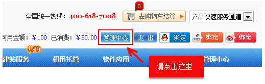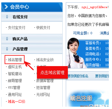 2.進入管理中心,點擊左側導航欄-產品管理中的【域名管理】