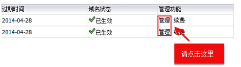 3、找到要修改DNS的域名,點(diǎn)擊域名對(duì)應(yīng)的【管理】